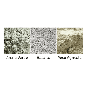 Roca Basáltica + Arena Verde (Glauconita) + Sulfato de Calcio (Yeso Agrícola)