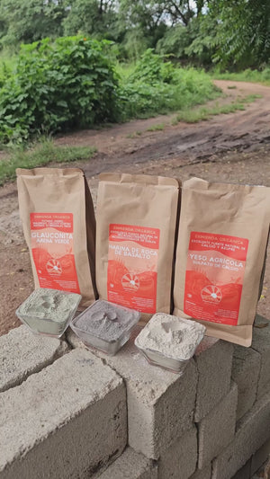 Roca Basáltica + Arena Verde (Glauconita) + Sulfato de Calcio (Yeso Agrícola)